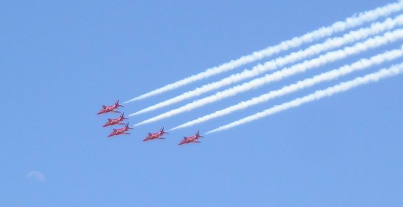 | AIRE 06 - MURCIA Mientras íbamos viendo la exposición, algunos aviones de escuadrillas aéreas nos deleitaron con sus acrobacias (desconozco si estaban entrenando o nos estaban entreteniendo, pero nos dejaron flipaos). Particularmente me llamaba la atención la precisión con la que hacía formaciones y maniobraban manteniéndola! Parecía que estuvieran enganchaos!!!!